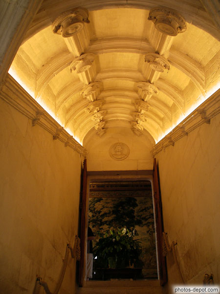Voute d'ogives du Vestibule dont les clefs, décalées les unes par rapport aux autres, forment une ligne brisée, réalisée en 1515, France, Centre, Chenonceaux