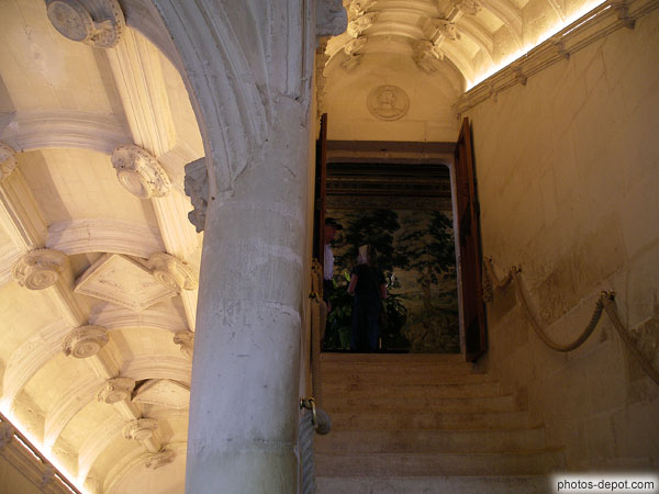 Un des 1ers escaliers droit ou rampe sur rampe construits en France sur le modèle italien, France, Centre, Chenonceaux
