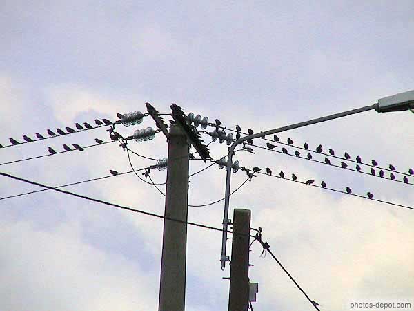 Oiseaux sur les fils, France, Nord, Lille, Fretin