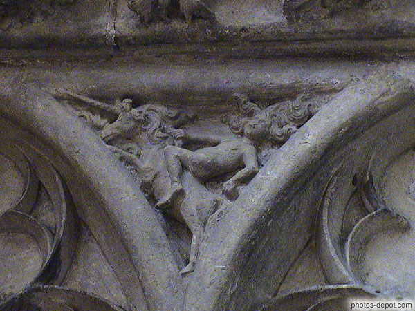 Détail d'une scène d'écoinçon d'arcature dans le déambulatoire, Belgique, Halle, Basilique
