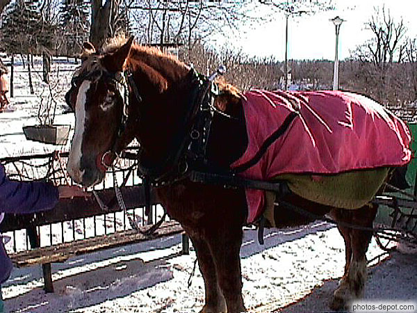 Cheval harnaché et couvert pour l'hiver, Canada, Quebec, Montreal, Mont Royal