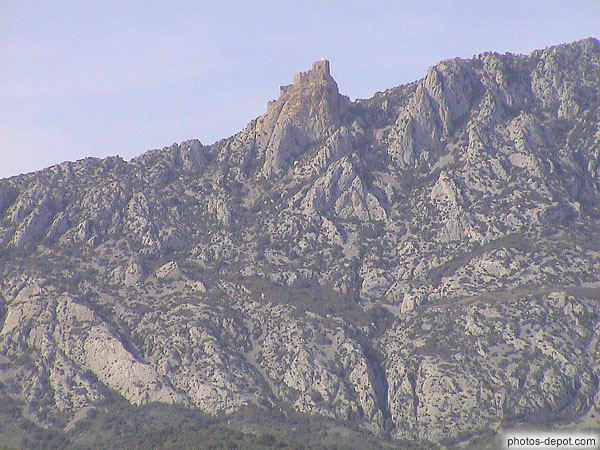 Tour de guet sur la crête rocheuse, France, Languedoc Roussillon, Tautavel