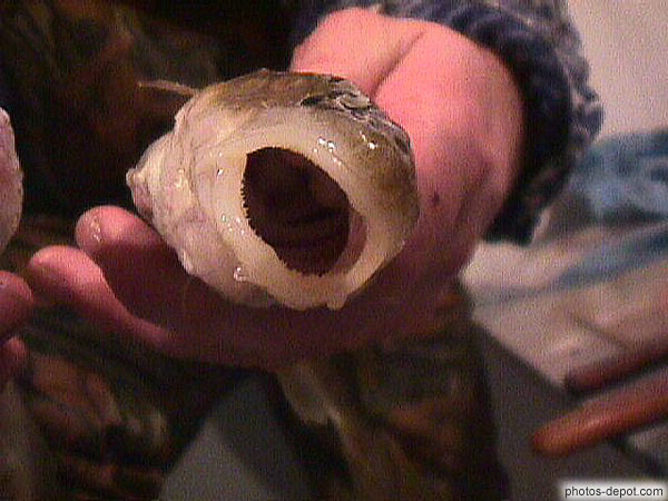 Le poulamon est très vorace, il se jette sur le foie de porc dont on se sert pour l'appat, Canada, Quebec, Ste Anne de la Perade