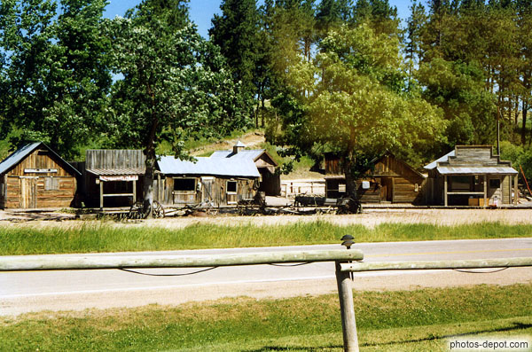 Village typique farwest dans les Badlands, USA, Dakota du Sud, Black Hills