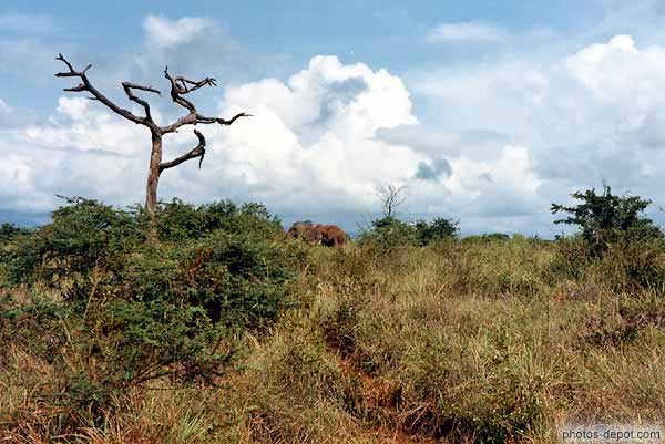 Arbre mort et éléphants, Afrique, Kenya
