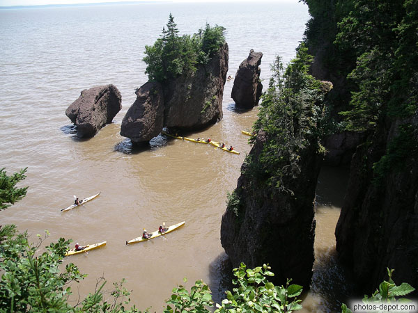 Balade sous les rochers en canoé, Canada, Nouveau Brunswick, Fundy Hopewell Rocks