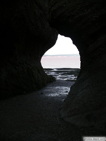 La mer à travers une infractuosité dans le rocher, Canada, Nouveau Brunswick, Fundy Hopewell Rocks