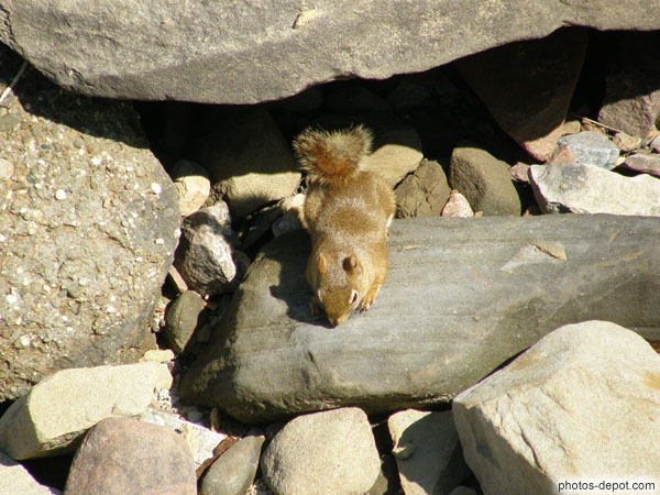 Petit écureuil roux sur la grève, Canada, Nouveau Brunswick, Fundy Hopewell Rocks