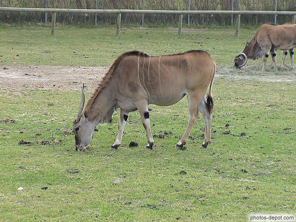 L'allure de l'Eland du Cap est trompeuse : c'est une antilope rapide réalisant des bonds de plus de 2 m de haut !, France, Languedoc Roussillon, Réserve Africaine de Sigean
