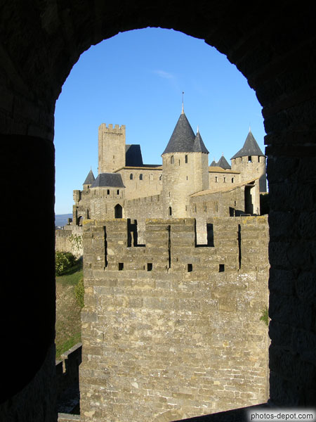 Vue sur le chateau Comtal depuis tour ouest, France, Languedoc Roussillon, Carcassonne