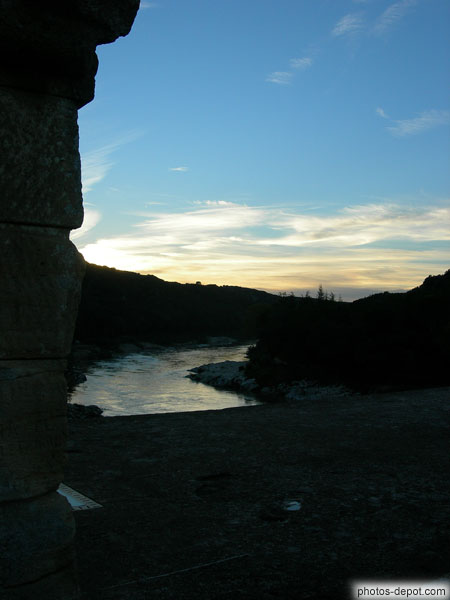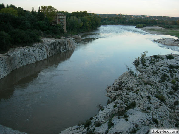 Vue amont du Gardon depuis le pont du Gard, France, Languedoc Roussillon, Pont du Gard