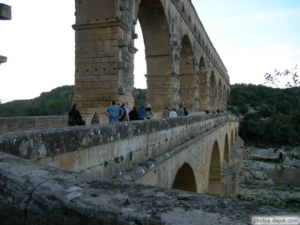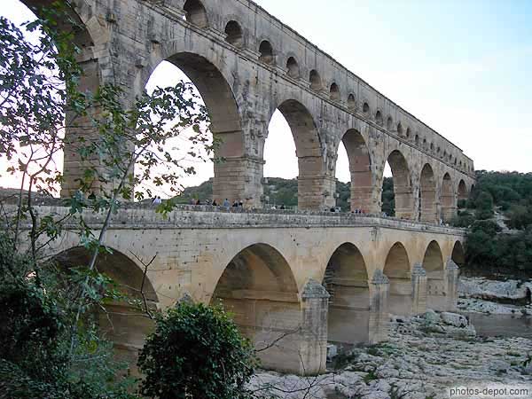 Pont du Gard 360 mètres, 48 mètres de hauteur, 3 niveaux, aqueduc romain conduisant l'eau d'Uzès à Nimes, France, Languedoc Roussillon, Pont du Gard