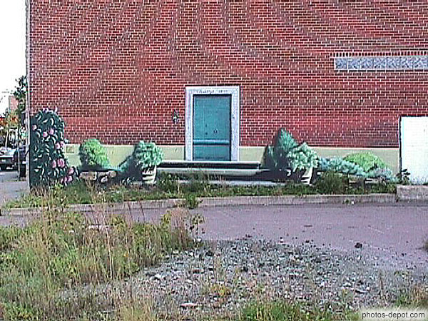 Porte, escalier et plantes en trompe l'oeil, Canada, Quebec