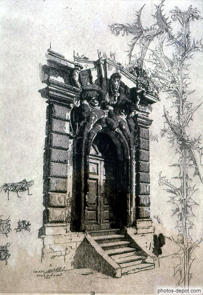 Porte décorée, Villa Terzi, Italie, Rome
