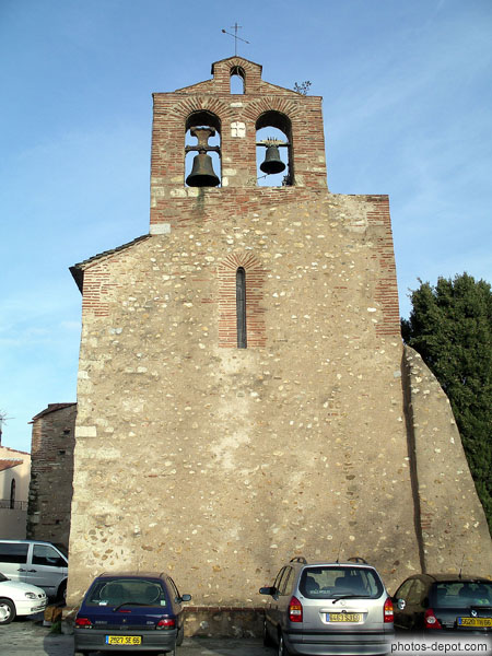 Eglise au mur clocher, France, Languedoc Roussillon, Polestres