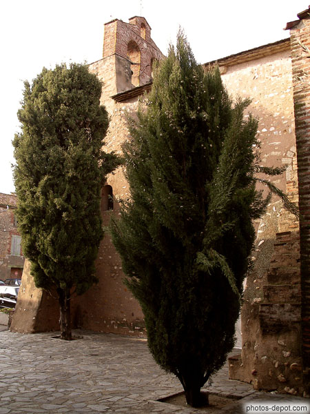 Arbres devant l'Eglise, France, Languedoc Roussillon, Polestres