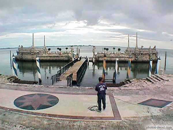 Grand chaland de pierre face à la mer, USA, Floride, Miami, Villa Vizcaya