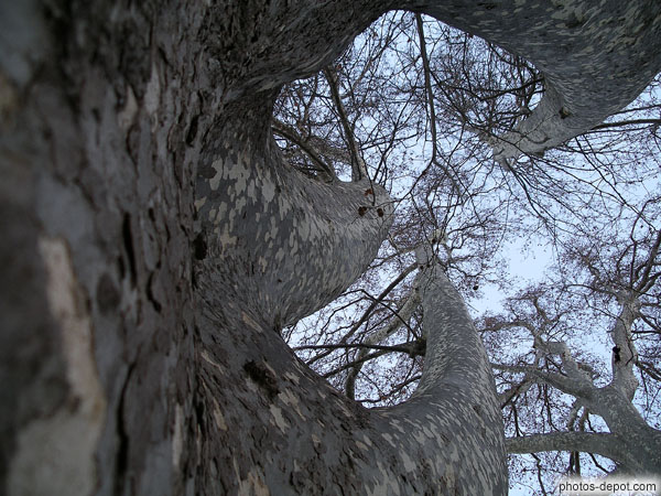 Platane aux branches noueuses, France, Languedoc Roussillon, Perpignan