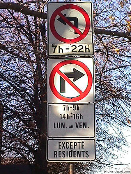 Interdictions de tourner dans les deux sens, a des heures différentes.., Canada, Montreal