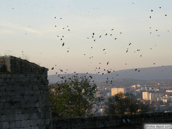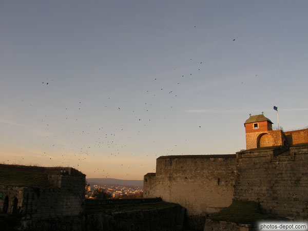 Citadelle aux corbeaux le soir, France, Franche Comté, Besancon, Citadelle Vauban