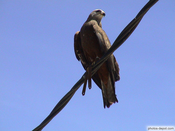 Faucon Lanier sur fil électrique, France, Languedoc Roussillon, Valmy