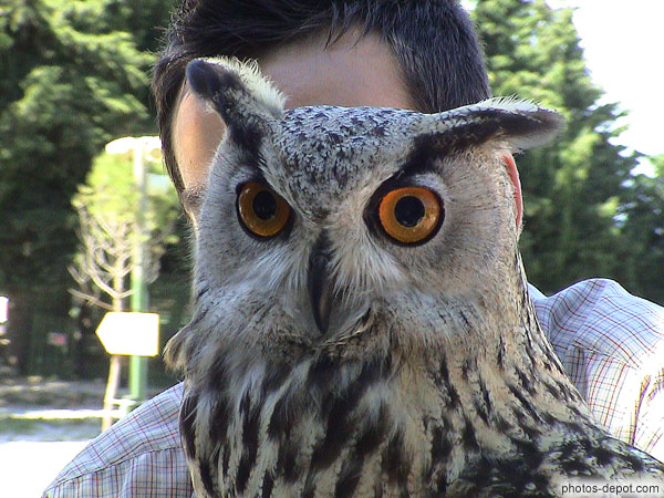 Tête de Hibou Grand Duc, France, Languedoc Roussillon, Valmy