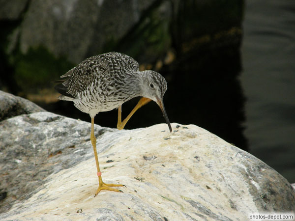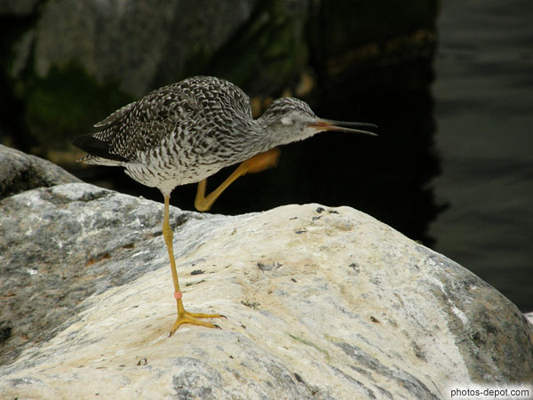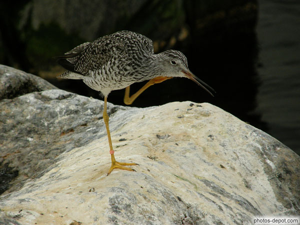 Chevalier gambette se gratte avec la patte, Canada, Montreal, Biodome