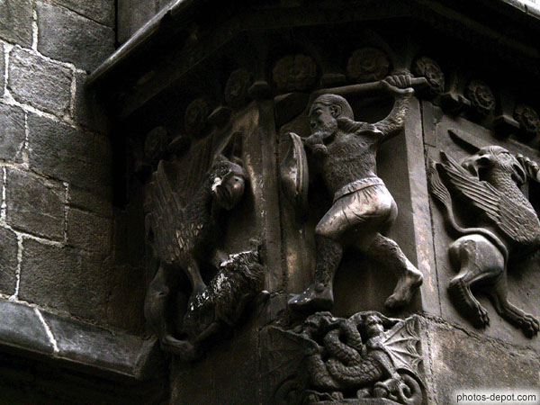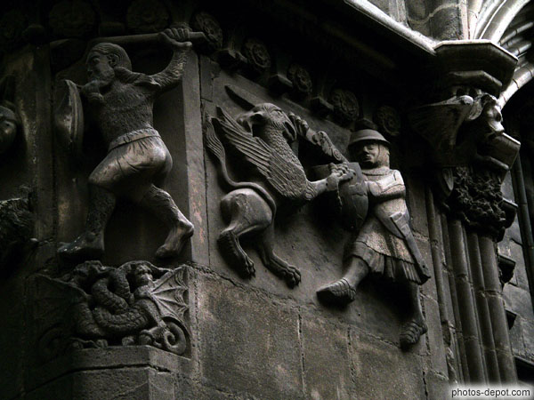 Homme poilu combattant un griffon, Espagne, Barcelone