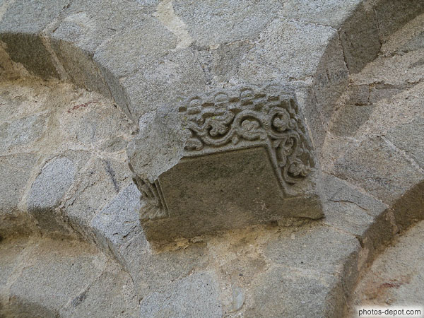 Sculptures florales : rinceaux sur modillon, Chapelle St Julien, France, Languedoc Roussillon, Villeneuve de la Raho