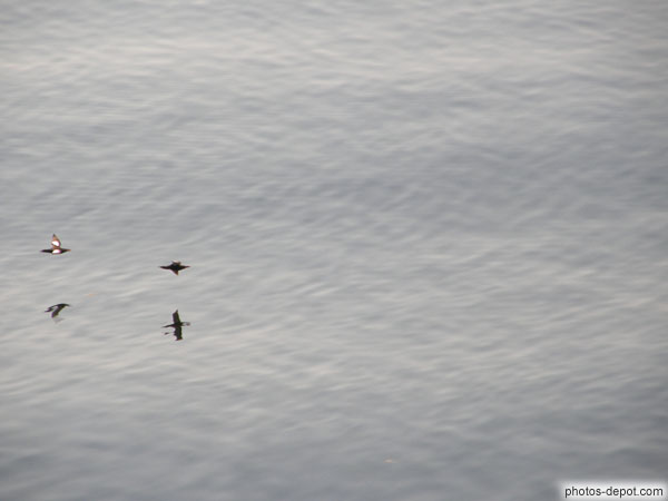 Vol au raz de l'eau de guillemots à miroirs, Canada, Gaspesie, Parc Forillon