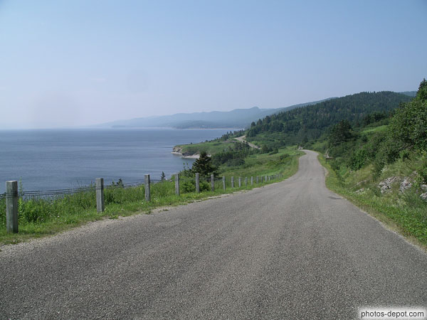 Route en lacets longeant la cote, Canada, Gaspesie, Gaspé