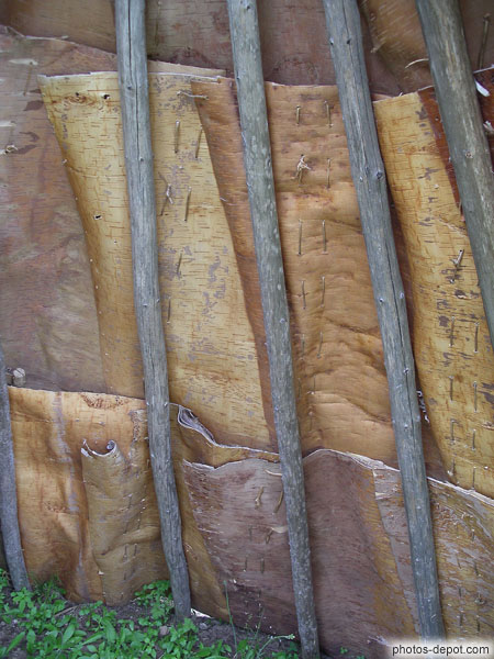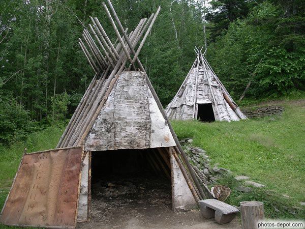 Tentes en écorce de bouleau cousues des indiens Micmacs, Canada, Gaspesie, Gaspé, Gespeg