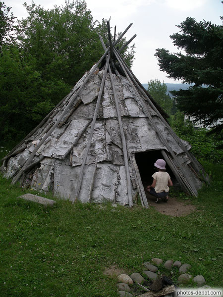 Tente Micmac en écorce de bouleau, Canada, Gaspesie, Gaspé, Gespeg