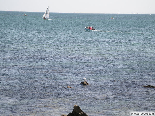 Bateaux, mouette sur le rocher, France, Bretagne, Locmariaquer