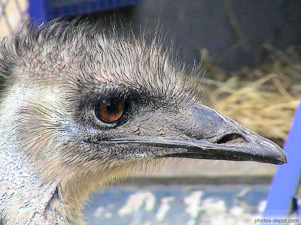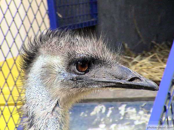 Tête d'autruche de profil, Belgique, Bruxelles, ferme de Bécassine