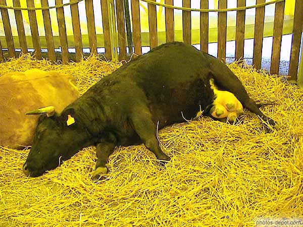 Vache de Jersey noire couchée, Belgique, Bruxelles, ferme de Bécassine