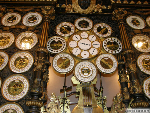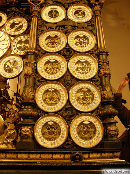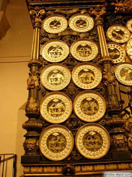 Multiples cadrans de l'Horloge Atronomique, Cathédrale St Jean, France, Franche Comté, Besancon