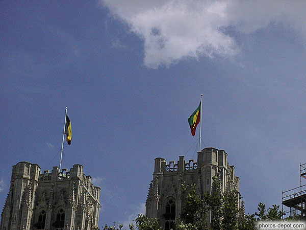 Drapeaux sur les tours de la Cathédrale, Belgique, Bruxelles