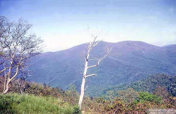 Arbre mort devant la vallée, USA, Virginie, Smokey Mountains, Blue Ridge Parkway, Shenandoah national park