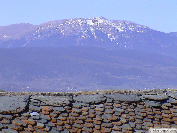 Montagne derrière le toit, France, Languedoc Roussillon, Cerdagne, Odeillo
