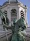 Drapeau des premiers croisés flottant sur la tour du fort de Godefroi de Bouillon, roi de Jérusalem