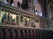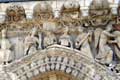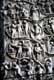 Portail de gauche, porte de bois sculpté aux scènes de la passion surmonté de scènes bibliques
