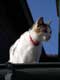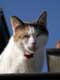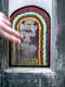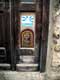 Chat devant porte vitrée surmontée de l'inscription ave maria 1806