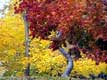 Colonne centrale soutenant la voute et peinte aux couleurs jaunes, rouge et bleue