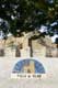 Mosaïque ville d'elne sur banc devant l'abbaye basilicale