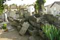 Empilement de sarcophages chrétiens mérovingiens abandonnés formant le mur du cimetière