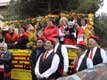 Els cantaires de la fossella sur leur remorque tirée par un tracteur