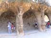Colonnes-piliers en pierres non dégrossies bordant une avenue couverte de gaudi