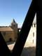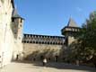 Hourds installés sur les remparts entre les tours vus de la cour d'honneur