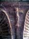 Chapiteau orné de visages sculptés, au dessus, un christ en pleurs, portail de marbre